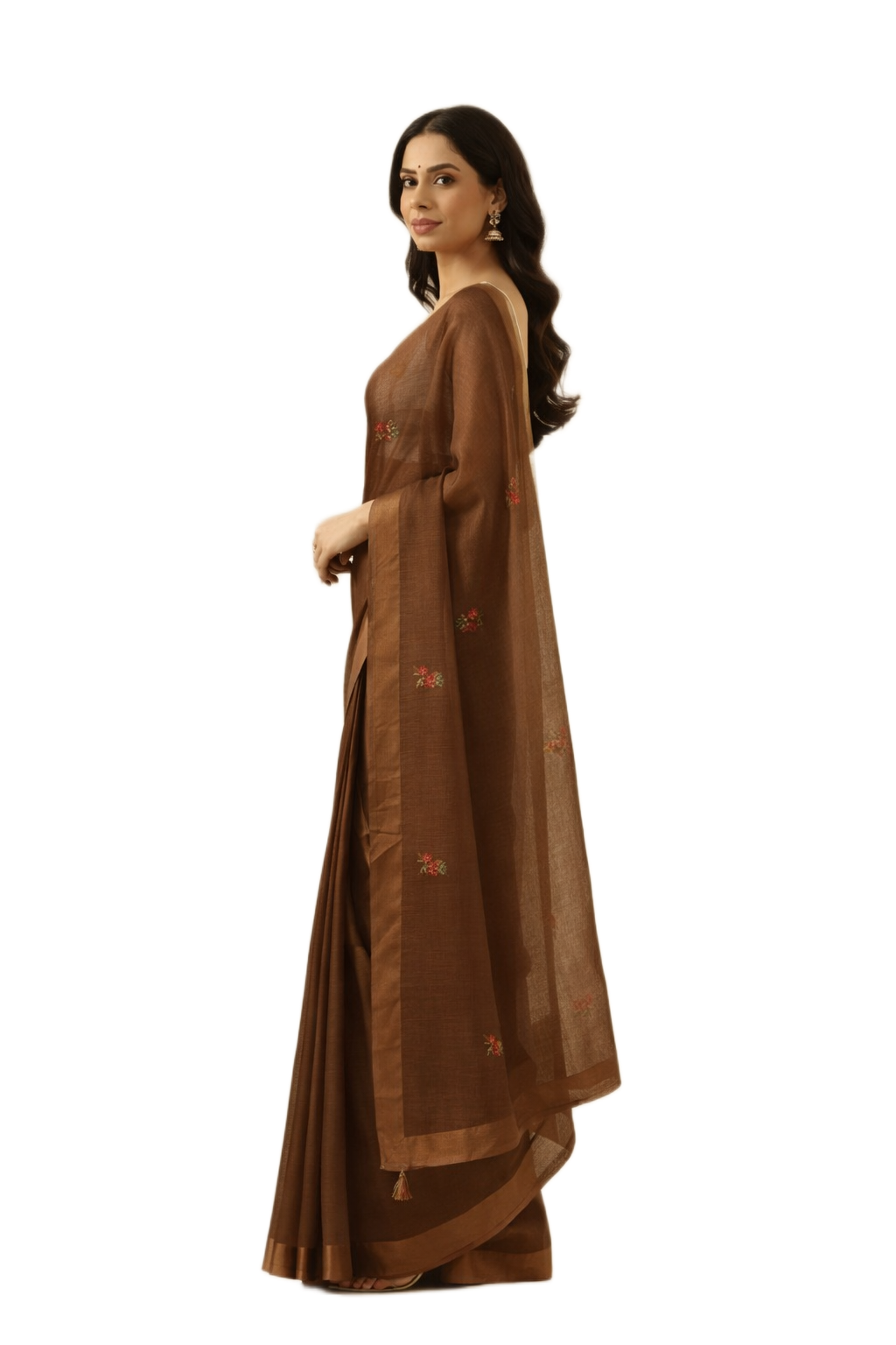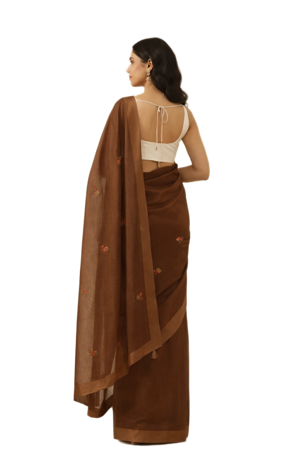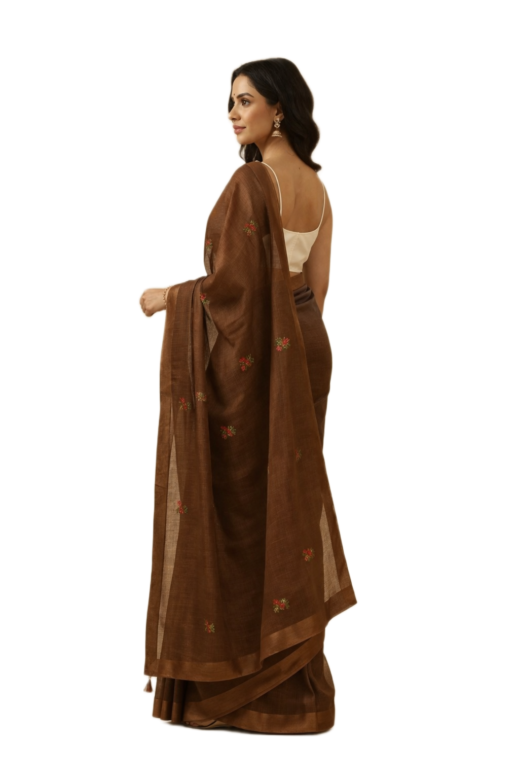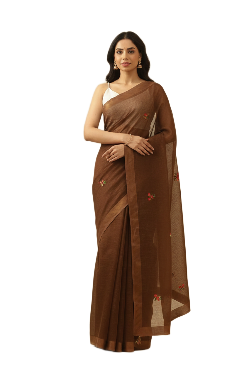 Brown Embroidered Kota Saree